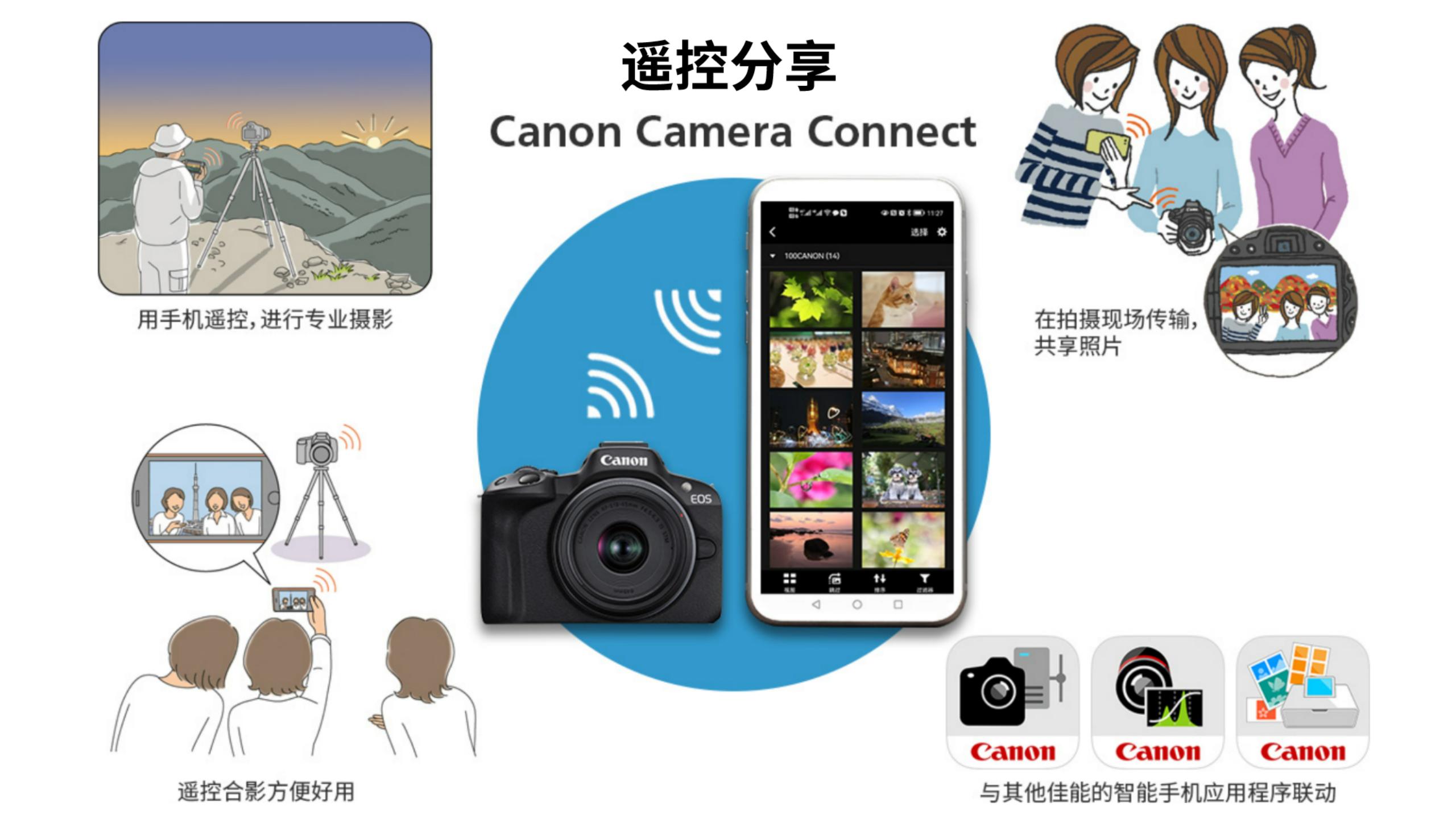 内置Wi-Fi / 蓝牙,方便连接智能手机,拓展照片应用领域,大幅提升用户的使用体验!
