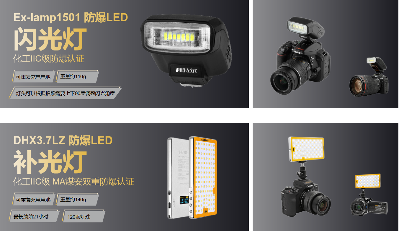 另外针对全黑的场景(比如矿井下),为了更方便对焦取景或者进行摄像,我们可以配置防爆补光灯,长时间持续性的进行补光,使拍摄者拥有满意的拍摄成果。