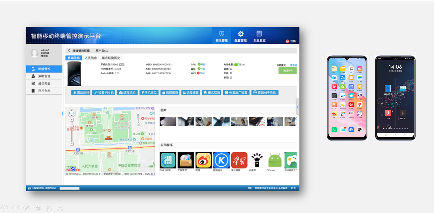 终端远程锁屏清空、终端远程振铃报警、终端位置监控、终端视频强拍