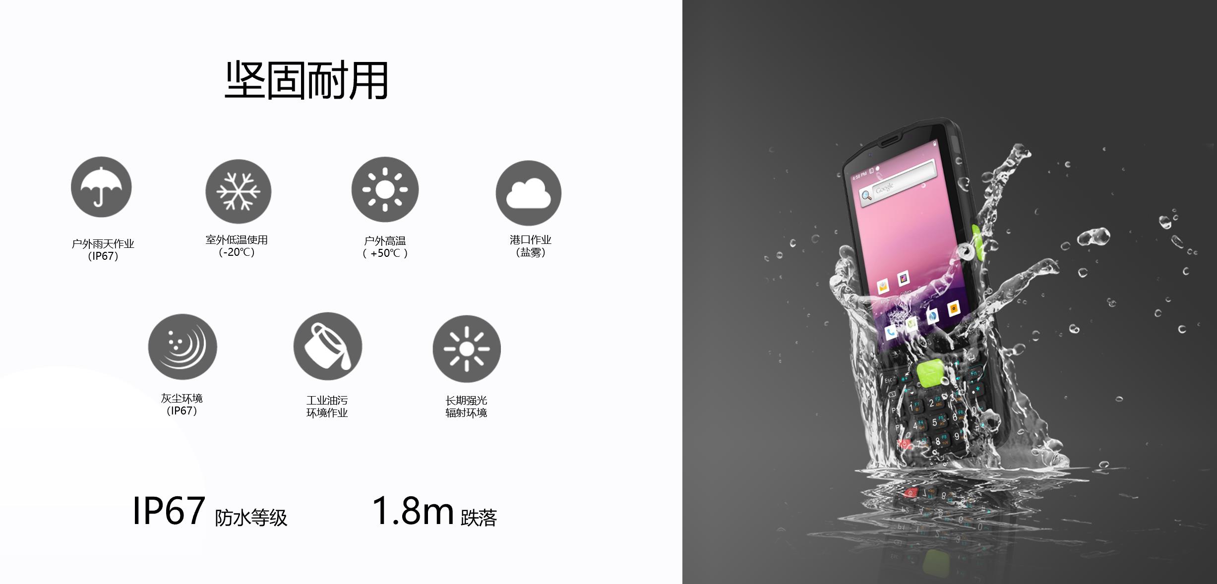 IP67防水等级、1.8m跌落;