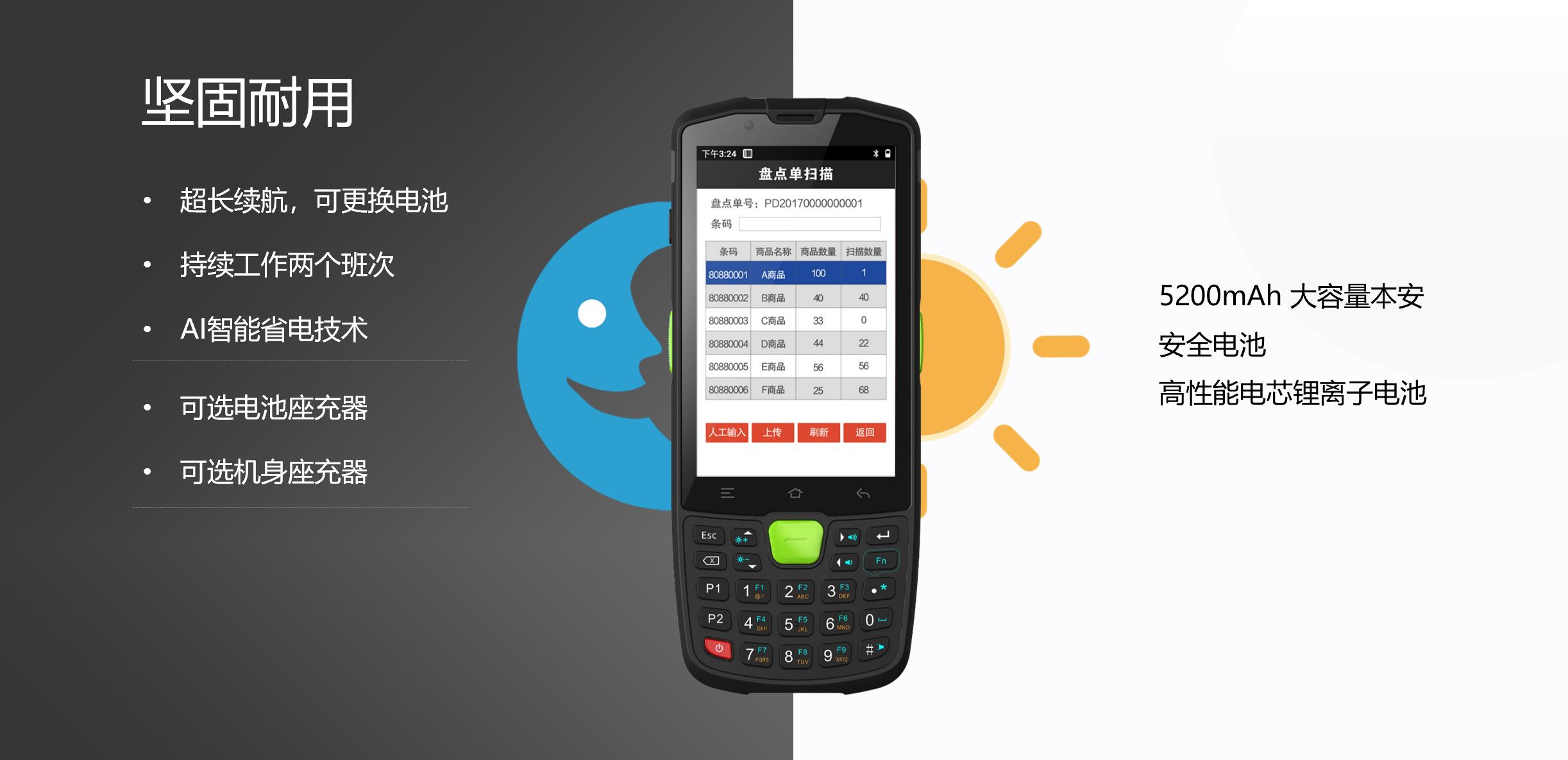 5200mAh大容量本安安全电池,超长续航。