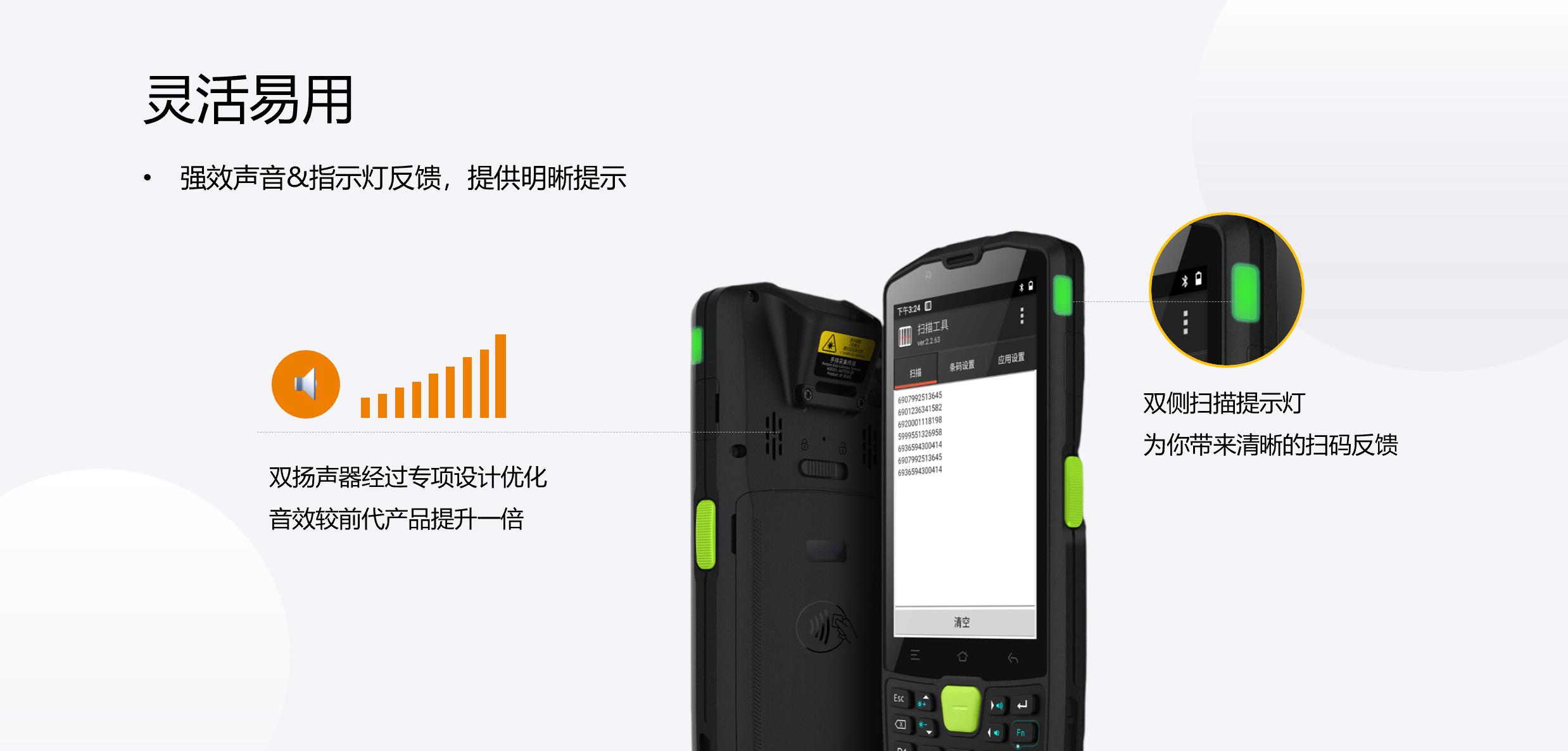 双侧扫描提示灯,为你带来清晰的扫码反馈;